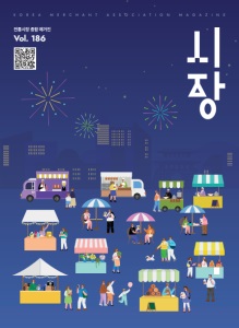 Contents Message 1 전국상인연합회 이충환 회장 인터뷰 Message 2 전국상인연합회 17개 지회장 응원 메시지 Exhibition 지역경제를 움직이는 힘, 전통시장 상품전시회 현장을 가다 제19회 충북우수시장박람회 & 인천광역시 전통시장 상품전시회 Special Theme 1 전통시장의 새로운 트렌드, 夜시장 Special Theme 2 전통시장의 변신은 무죄?! Trend 1 전통시장에 찾아온 AI Trend 2 전통시장과 함께하는 축제 여행 Trend 3 Z세대, 시장에서 이렇게 놀아요 INFO 소비자 시장 이용 꿀팁 SCHEDULE 깊어가는 가을, 우리 전통시장 박람회와 함께하세요 NEWS 전국상인연합회 소식 소상공인시장진흥공단 소식 02 04 06 10 14 20 24 28 32 36 34 발행일 2025년 8월 발행인 이충환 발행처 전 국상인연합회 주소 경 기도 수원시 팔달구 수원천로255번길 6 홈페이지 w ww.koreama.org 편집·제작 ㈜ 디자인위드 www.designwith.co.kr 전통시장 종합 매거진 <시장> Vol. 186 <시장> 매거진 바로가기